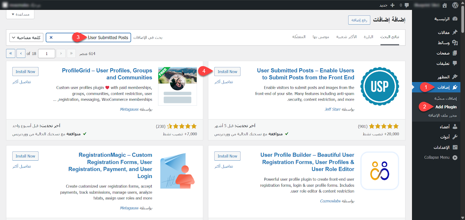لتثبيت إضافة UpsellWP على ووردبريس، انتقل إلى لوحة التحكم الرئيسية، ثم اختر من القائمة الجانبية “إضافات” > “أضف إضافة جديدة”. بعد ذلك، ابحث عن إضافة UpsellWP، وقم بتثبيتها، ثم فعّلها على المتجر.